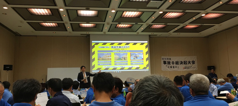 社員が主体となった安全衛生委員会が組織されており、毎月のミーティング、新入社員の安全教育のほか全社員出席の「事故”ゼロ”総決起大会」を年一回主催し、専門家、行政官による指導、研修を行っています。